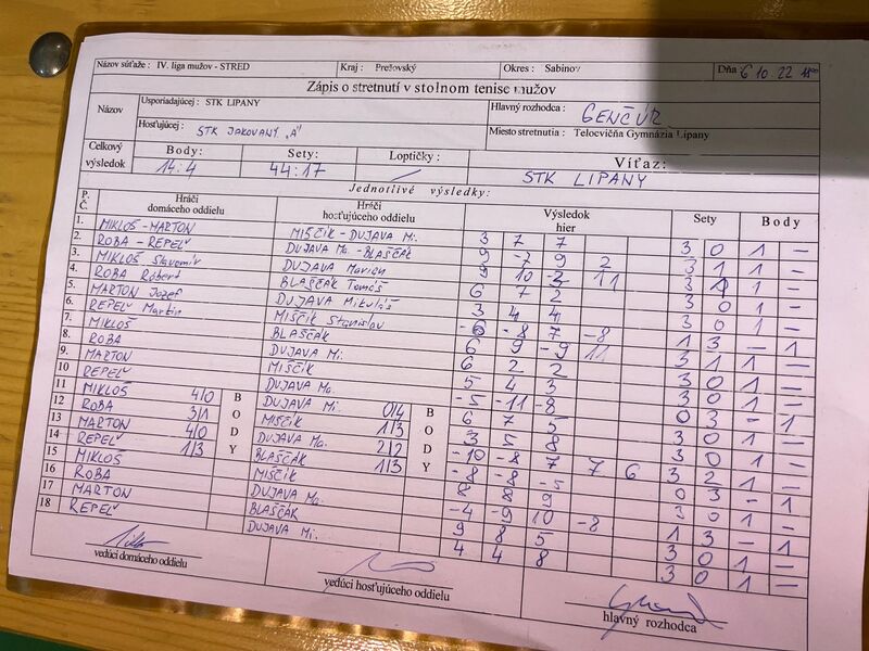 4. liga Šarišsko-Duklianska, Muži